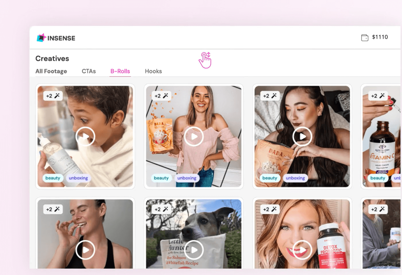 Enhance your ads with a rich library of high-quality and diverse UGC, including raw assets, different hooks and CTAs to help you effectively test and optimize your campaigns.